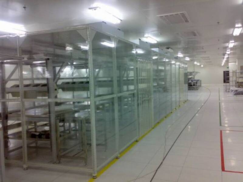 潔凈棚采用工業鋁材(或不銹鋼方通、鐵方通噴塑)作為框架,風機濾網機組(FFU)送風,四周懸掛防靜電垂簾(或鋼化玻璃),其內部凈化級別可達到100-10000級。適用于操作區內局部凈化級別要求高的區域。